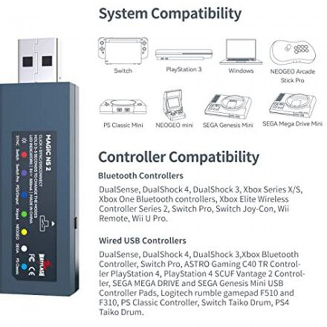 • Name: Mayflash Magic-NS2 Wireless Controller Adapter with USB-C Cable