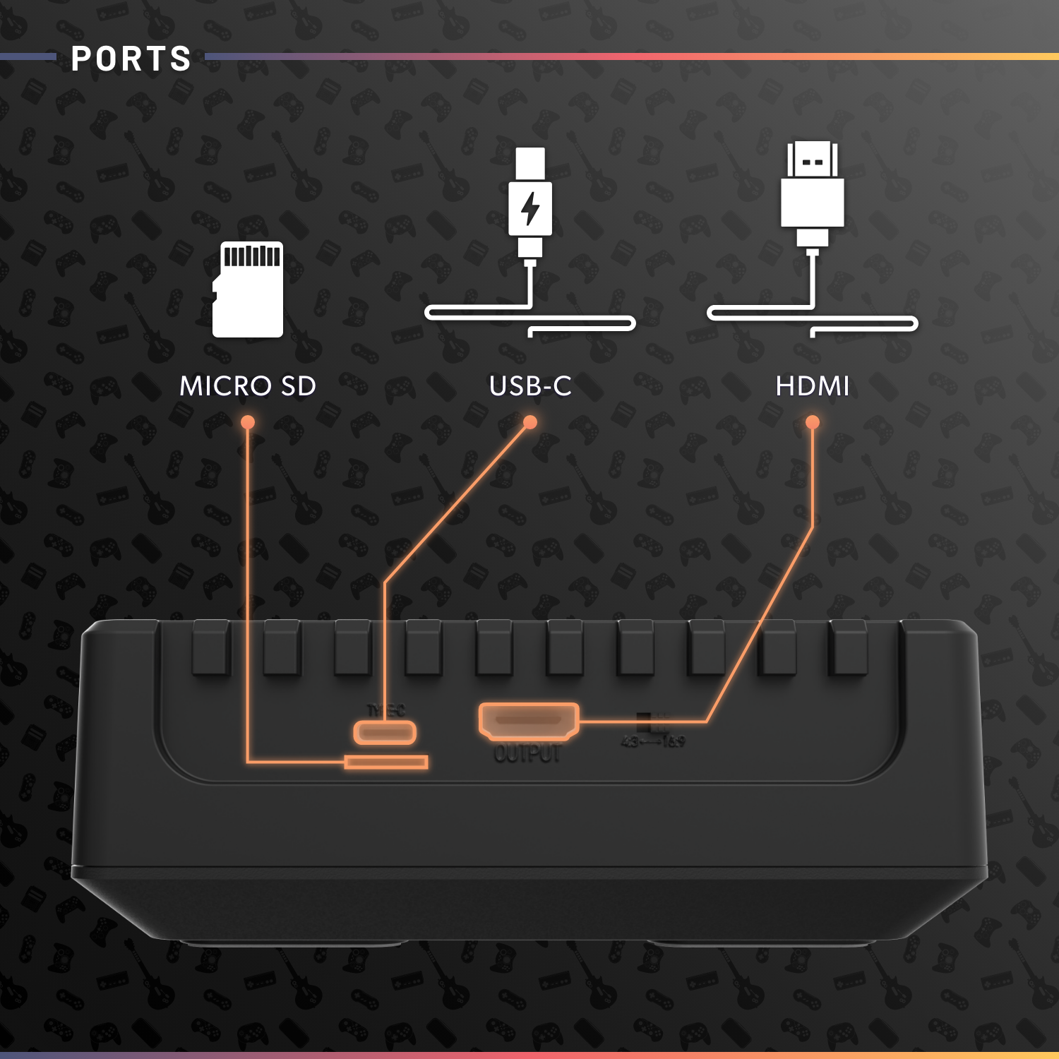 HDMI, Micro SD, USB-C, Dual Controller Ports |