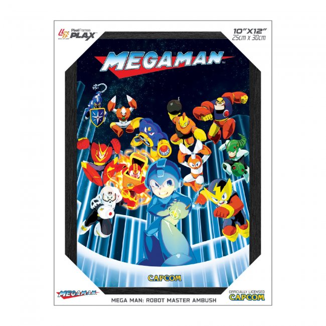 Prepare for an epic encounter with the Mega Man Robot Master Ambush Framed Lenticular Poster. This officially licensed Capcom collectible brings the iconic gaming archives to life with stunning 3-Dimensional art. Watch as your favorite Blue Bomber faces off against a horde of Robot Masters from the Mega Man Legacy Collection. It's an exceptional animated display, perfect for adding a retro gaming vibe to any space. Easily showcase this vibrant artwork on walls or flat surfaces. Immerse yourself in the dynamic world of Mega Man, where every glance reveals new depths. This unique piece is a must-have for any true fan's collection.