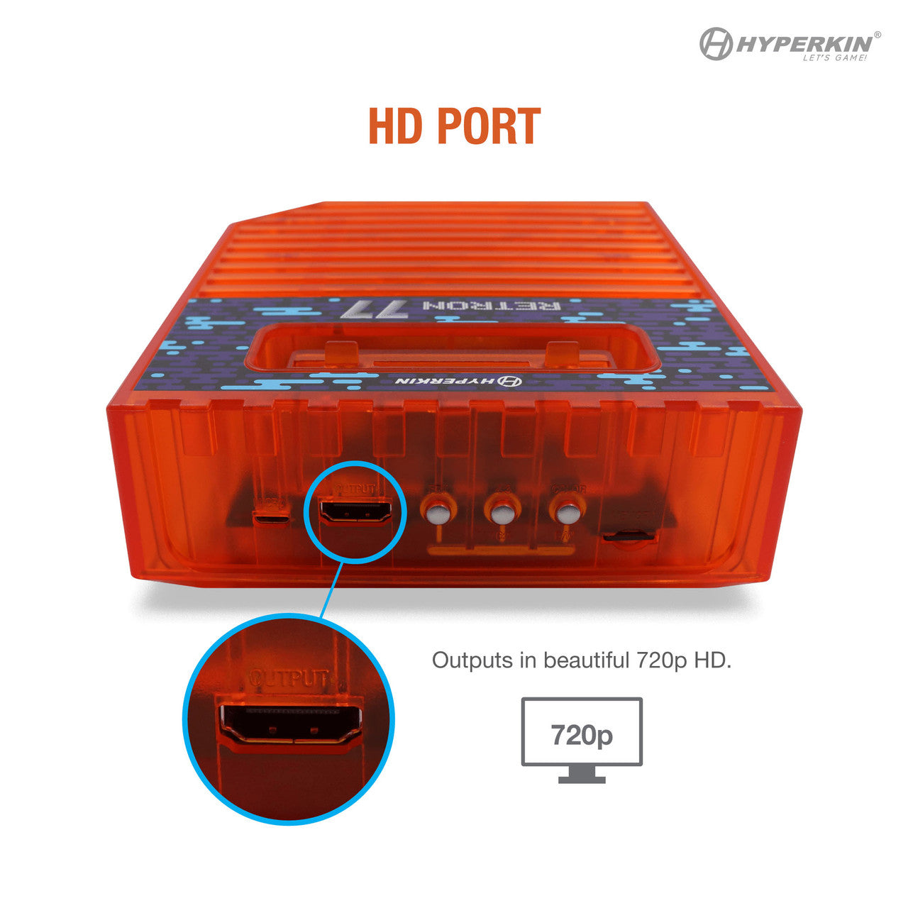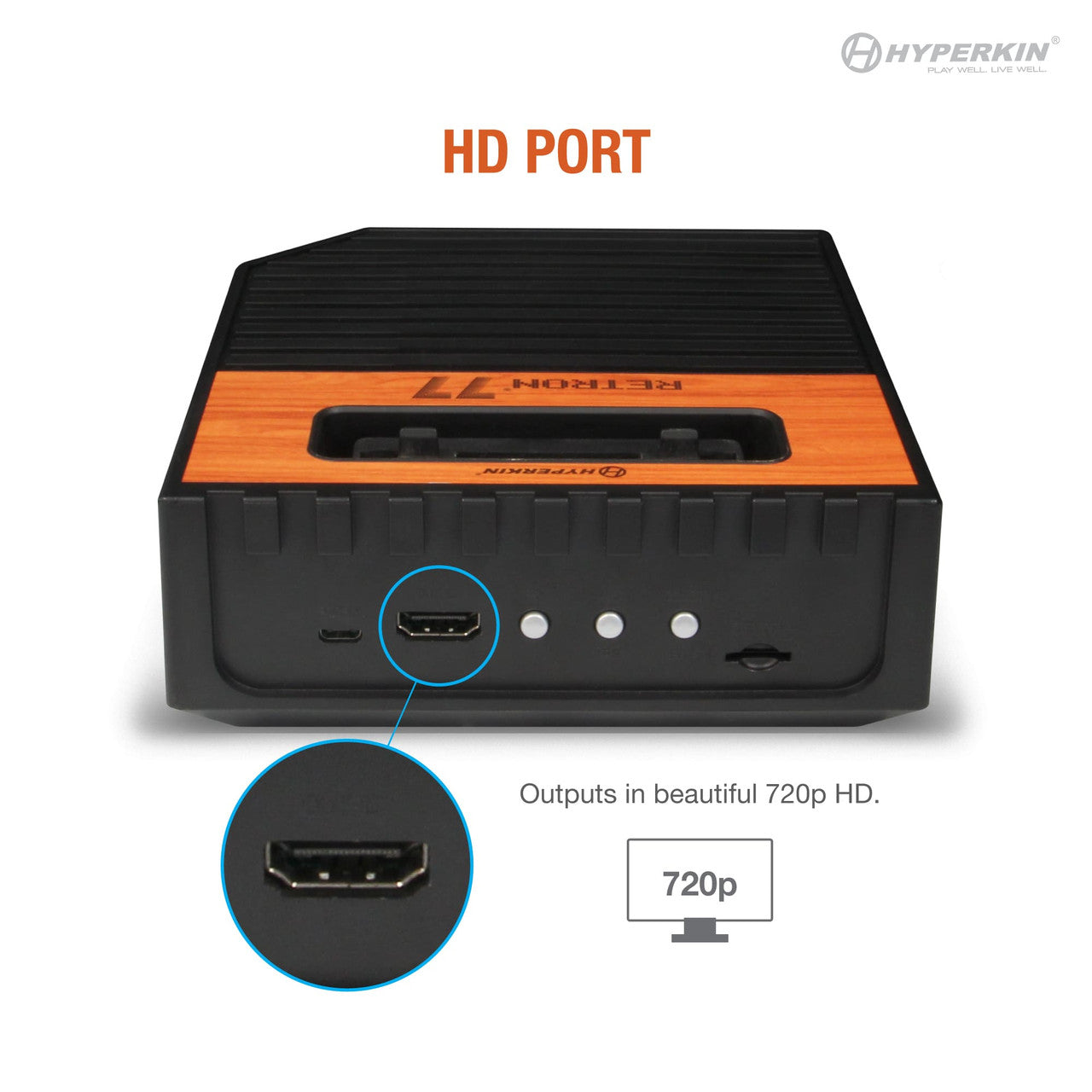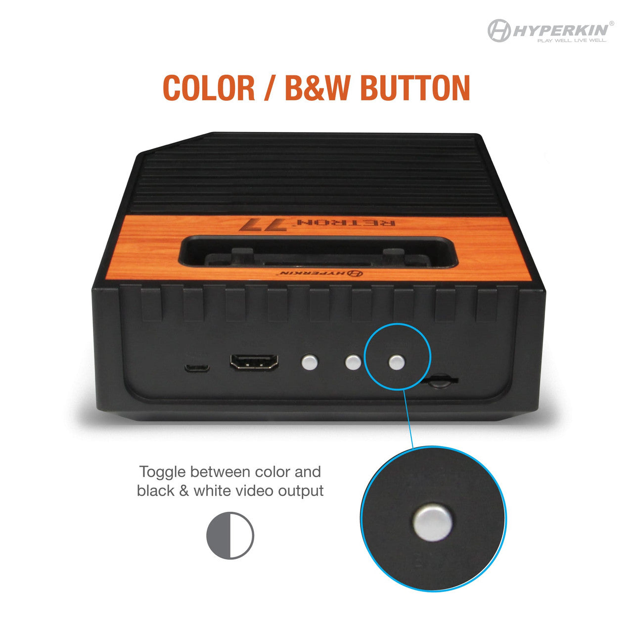 Step back in time to the grooviest era of gaming with the Hyperkin RetroN 77. This console expertly plays your treasured 2600™ cartridges, bringing them to life in stunning 720p HD. Enjoy pixel-perfect fun with slick wood paneling and smart save states. Its on-board mode select offers ultimate control over your retro adventures. A 6 ft. Micro cable powers your journey into nostalgia. The included two-button, ambidextrous controller ensures comfortable gameplay. Plus, your original joysticks and paddles are fully compatible. Get ready for a happening pixel party!