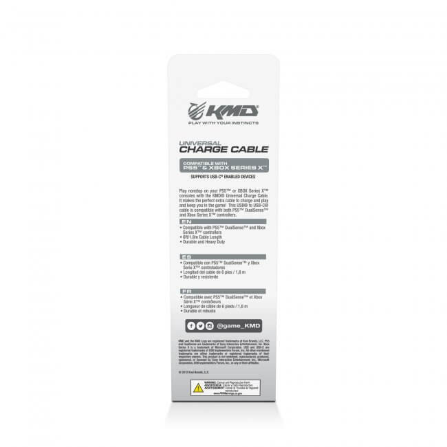 Play nonstop on your PS5 of Xbox Series X consoles with the KMD® Universal Charge Cable.  It makes the perfect extra cable to charge and play and keep you in the game!  This USB® to USB-C® cable is compatible with both the PS5 DualSense and Xbox Series X controllers.