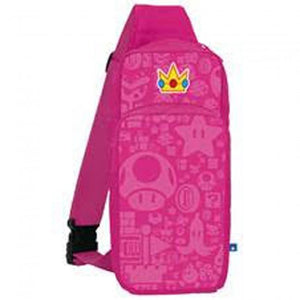 Start your next adventure in style with the HORI Adventure Pack (Princess Peach edition) for Nintendo Switch™. The cross-body style bag with adjustable shoulder strap holds your Nintendo Switch system in the main system pocket along with your favorite accessories in the outer pocket such as the HORI Split Pad Pro. Officially Licensed by Nintendo®
