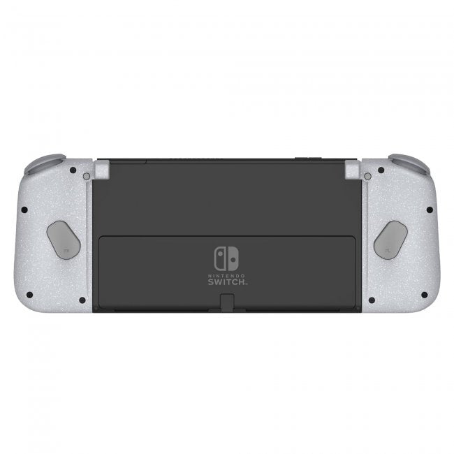 The Split Pad Compact attaches to the Nintendo Switch™ system to provide a full-size controller experience in Handheld Mode. The ergonomic form factor fits your hands perfectly for increased comfort and control. Features include full-size analog sticks and D-pad, turbo functions, and assignable rear buttons. Enjoy a new gaming experience with the Split Pad Compact! (Does not include Motion Controls, HD Rumble, NFC, or IR camera.) Officially Licensed by Nintendo®.