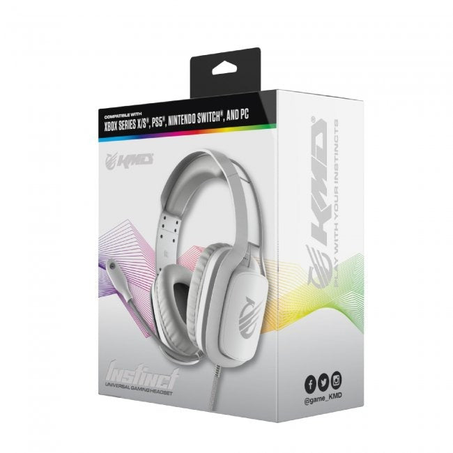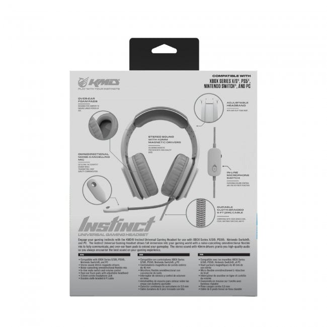 Engage your gaming instincts with the KMD® Instinct Universal Gaming Headset for use with XBOX Series X/S®, PS5®, Nintendo Switch®, and PC. The Instinct Universal Gaming Headset allows full immersion into your gaming world with a noise-canceling omnidirectional flexible mic to fully communicate, and over-ear foam pads to extend your gameplay. The stereo sound with 40mm drivers grants you high-quality audio so you always encounter the best sound on your gaming experience.